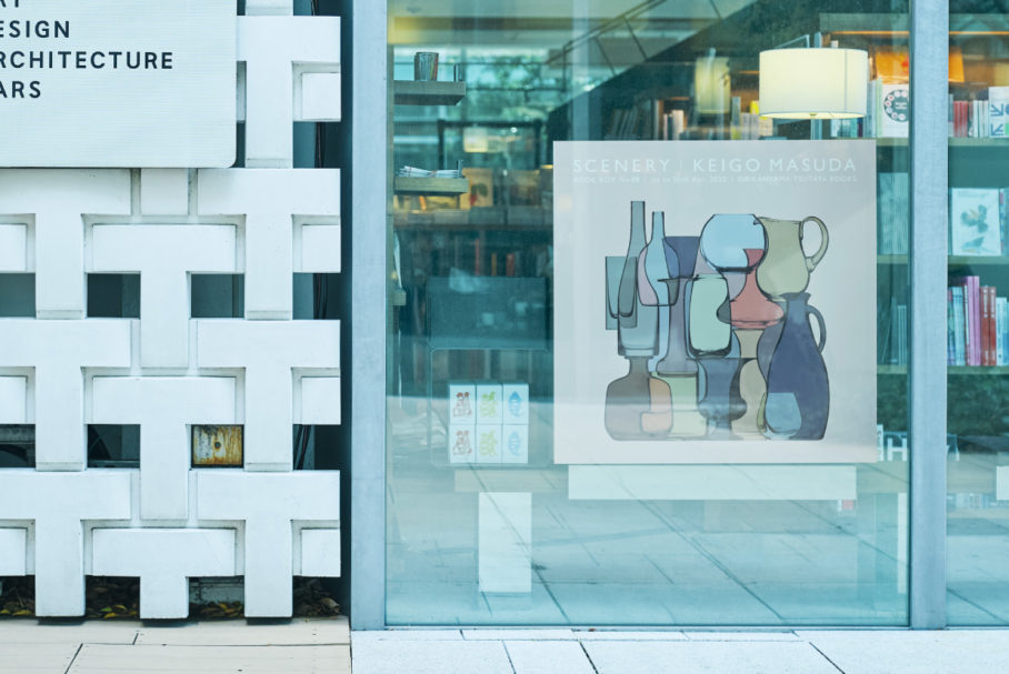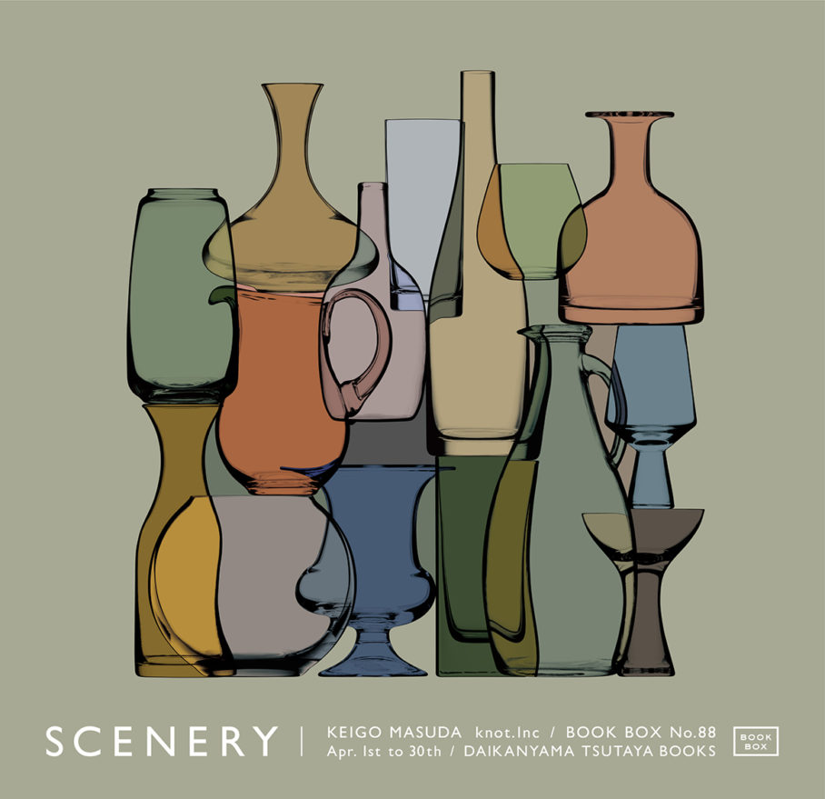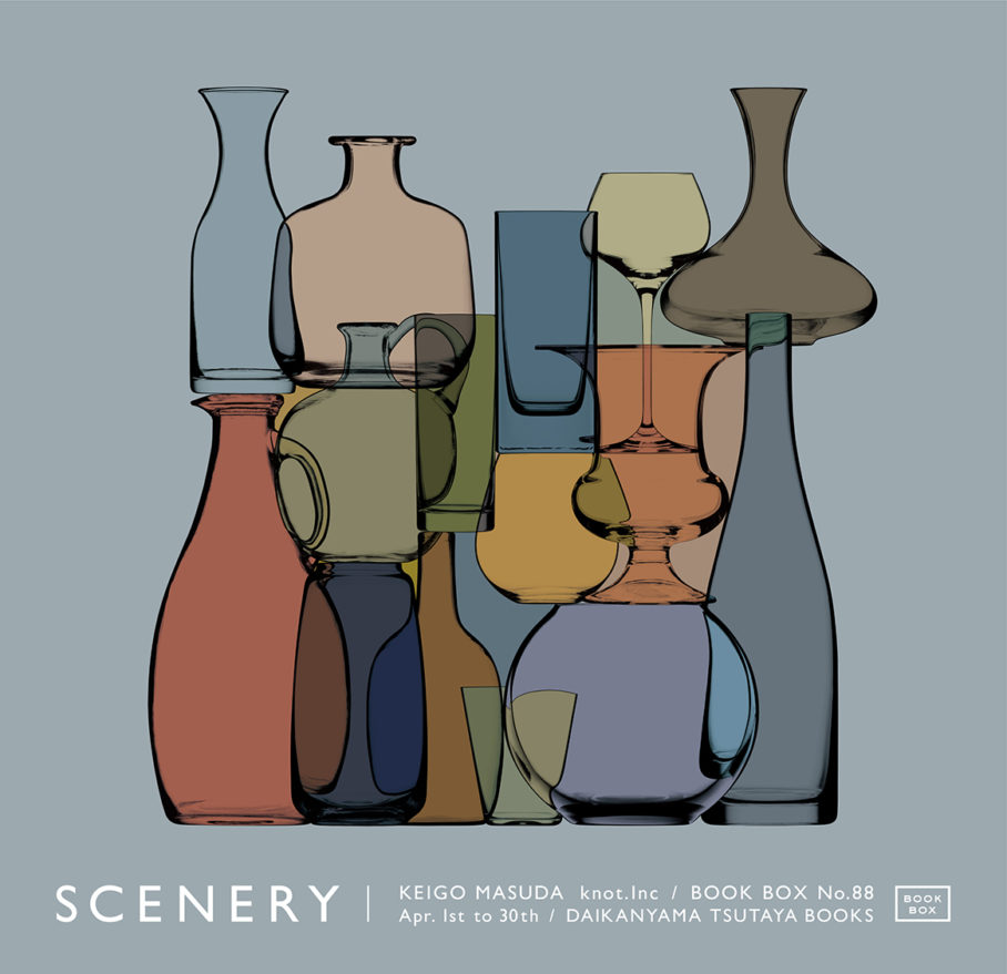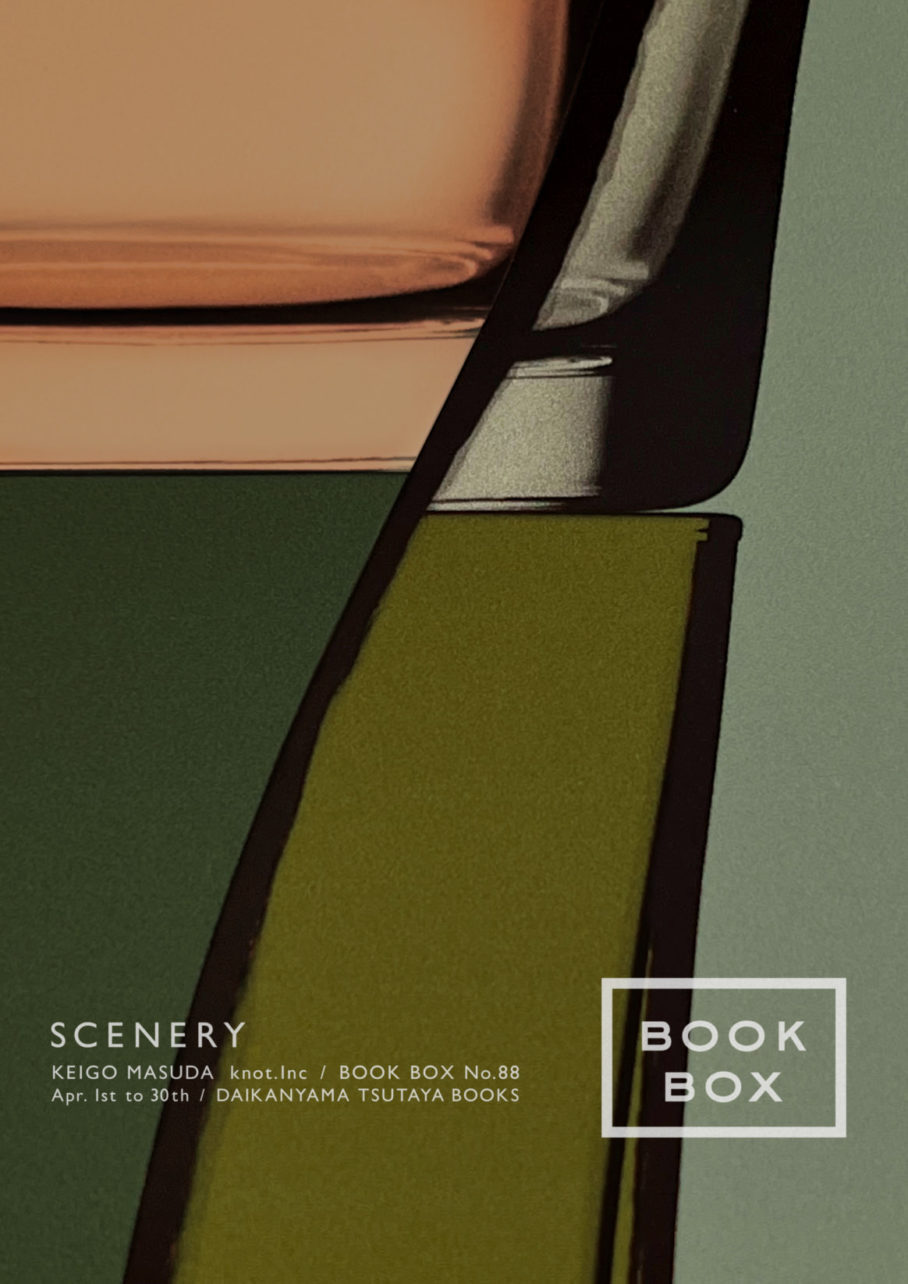 代官山蔦屋書店での展示「BOOK BOX」。「scenery.」と題し、写真とグラフィックの境界線を探ることで、日常を異なる視点で見ることを表現した「bottles」。またブランディングを担当している光浦醸造のグッズを展示、販売しました。