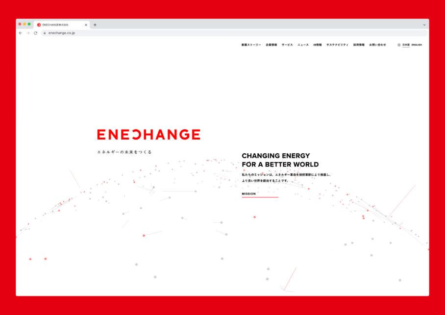 エネルギーの未来をつくる企業「ENECHANGE」のVI、ヴィジュアルコミュニケーション全般を担当しました。英国ケンブリッジ大学での電力データ解析の研究からはじまり、10年後のエネルギーの在り方を変革する先駆者として期待されているエネルギー事業会社。ENECHANGEが取り組んでいる課題は、常に「エネルギーの未来を変革する」ということから、シンプルにCHANGEの頭文字Cを反転させたVIとしました。またコーポレートカラーの赤は、創業者の母校であり、企業の起源でもあるケンブリッジ大学の校章から採用しています。