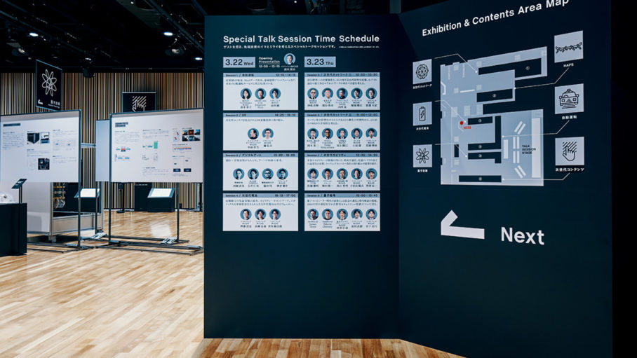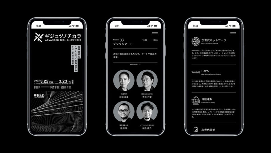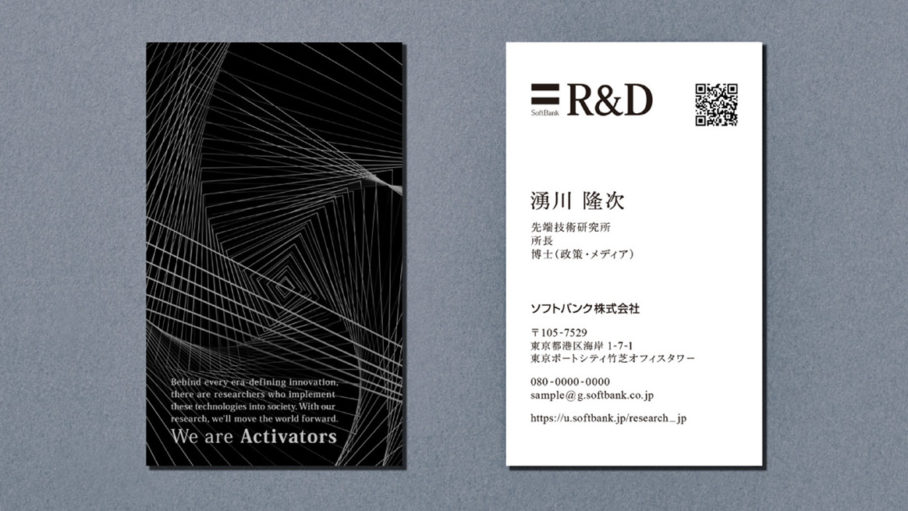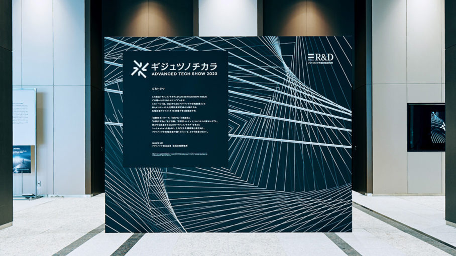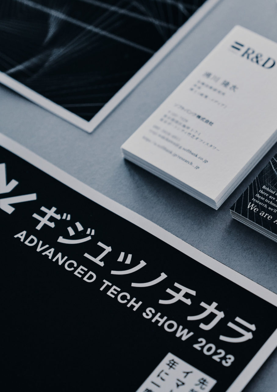 Infoソフトバンクに新設された先端技術研究所が開催する展覧会「ギジュツノチカラ」のアートディレクションを担当しました。VI、名刺、パンフレット、グッズ、展示什器、パネルデザイン、館内マップ、誘導サインなど全てのヴィジュアルコミュニケーションツールを、ソフトバンクのブランドカラーで統一しながら、先端技術研究所がもつソリッドな素質に合わせ展示空間を演出し、ブランド全体として強度のある展覧会を構築しました。VIはタグライン『We are Activators』を元に、世の中を動かす活性因子としての研究を行う姿勢を「風車」に重ね、また孫正義氏の『圧倒的ナンバーワンになれ』というメッセージから「1」を構成要素としています。併せて、先端技術研究所のVIをはじめ、名刺やユニフォームなどのツール類のデザインも制作しています。