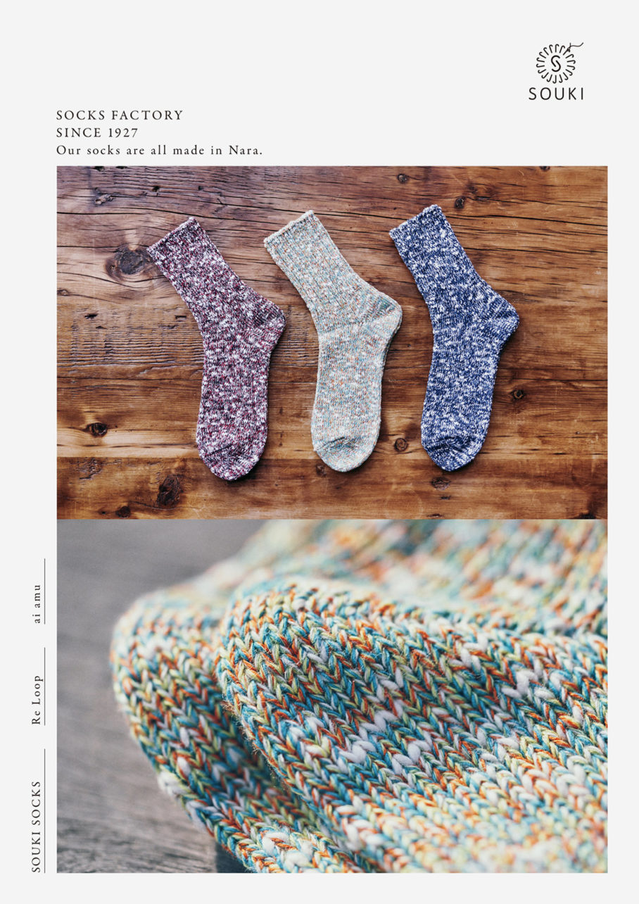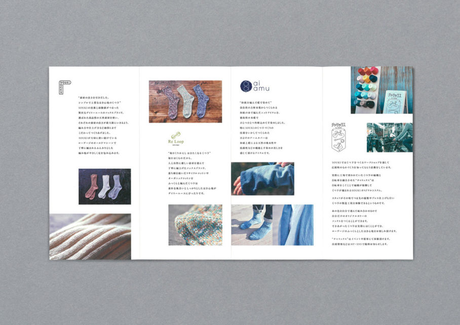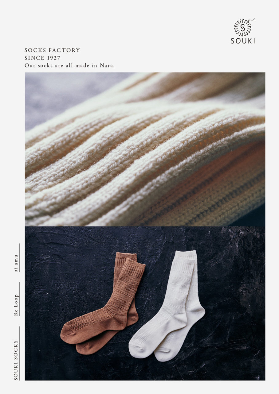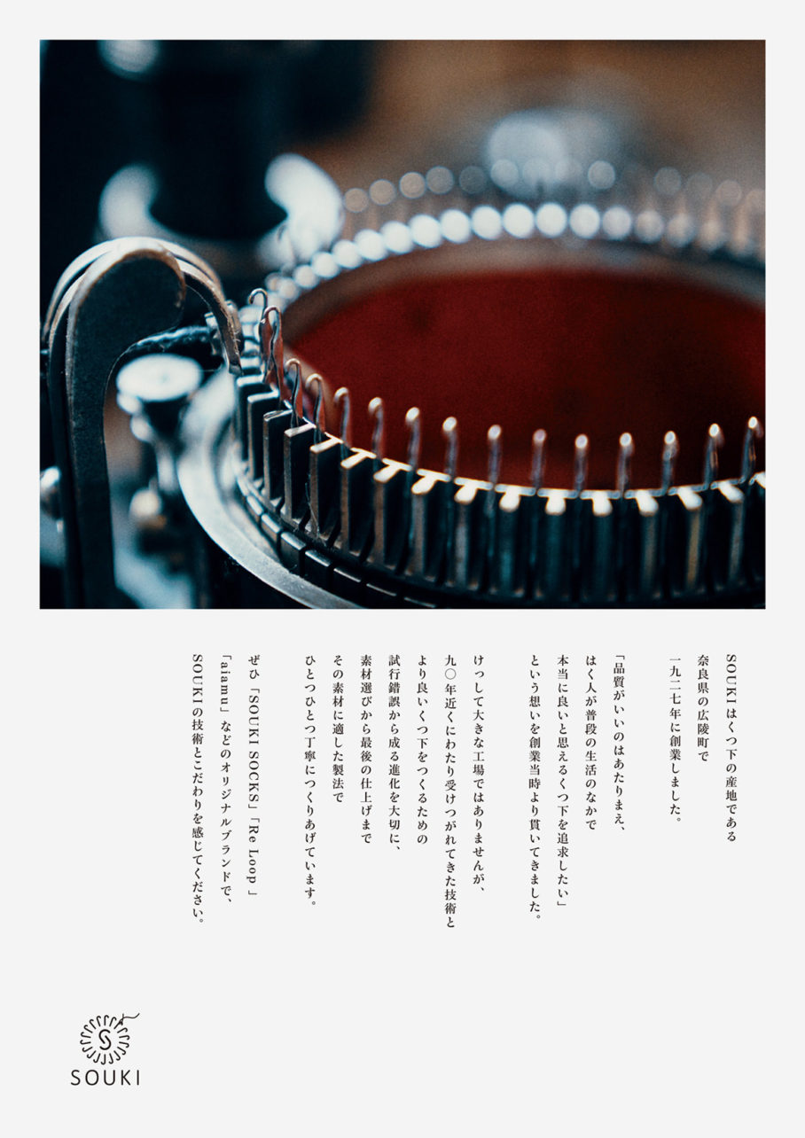 靴下の町、奈良県広陵町にある株式会社創喜のリブランディングにおけるブランドビジュアル、パンフレット、webサイトを担当しました。100年近く靴下を作り続けてきた工場のもつ佇まいと、素材と履き心地にこだわったソックスブランドであることが伝わるよう、上質なトーンでブランドイメージを創りました。また自社の代表的なワークショップに成長した「チャリックス」の紹介ムービーを制作。認知拡大と共に、広陵町を代表する靴下ブランドに育っています。