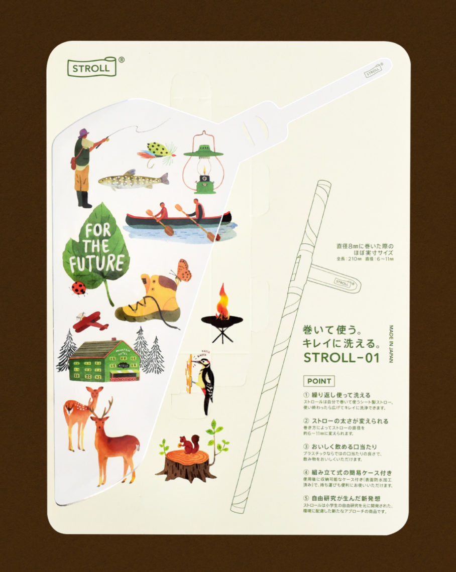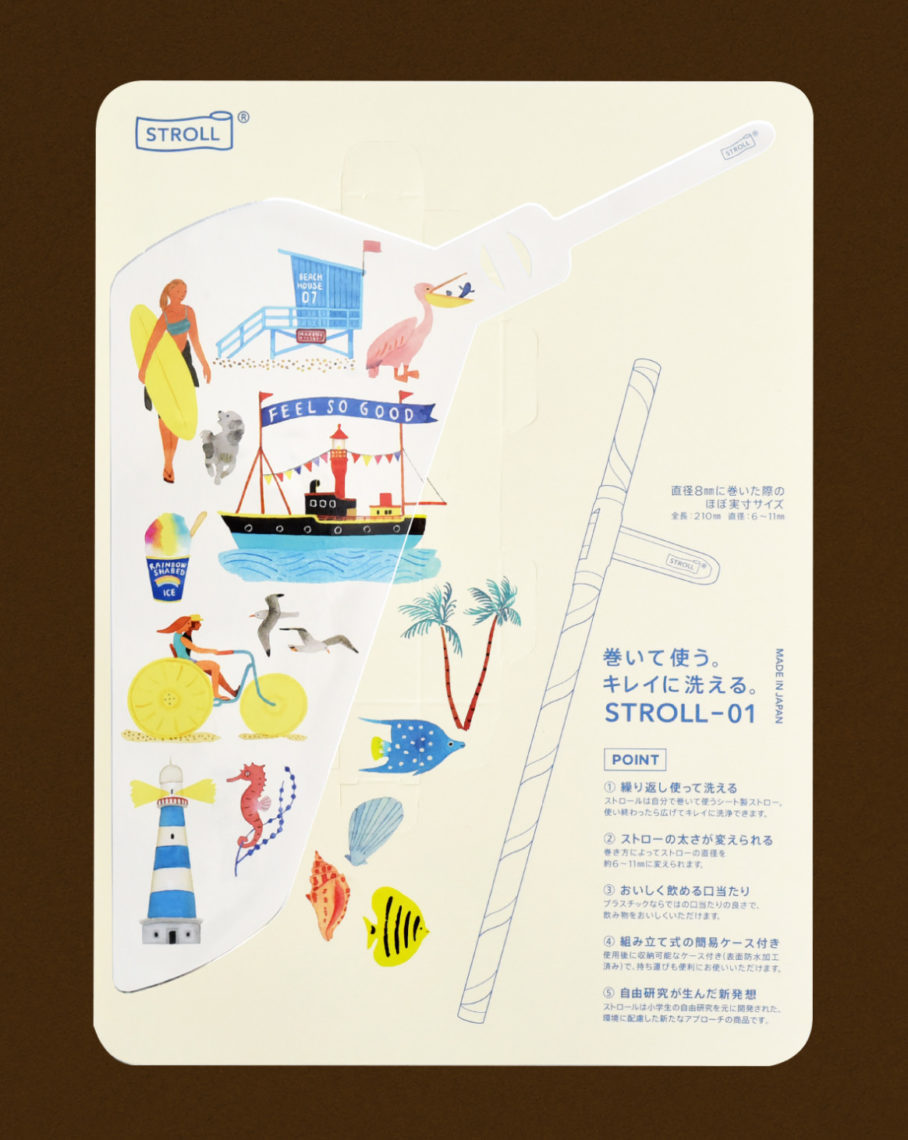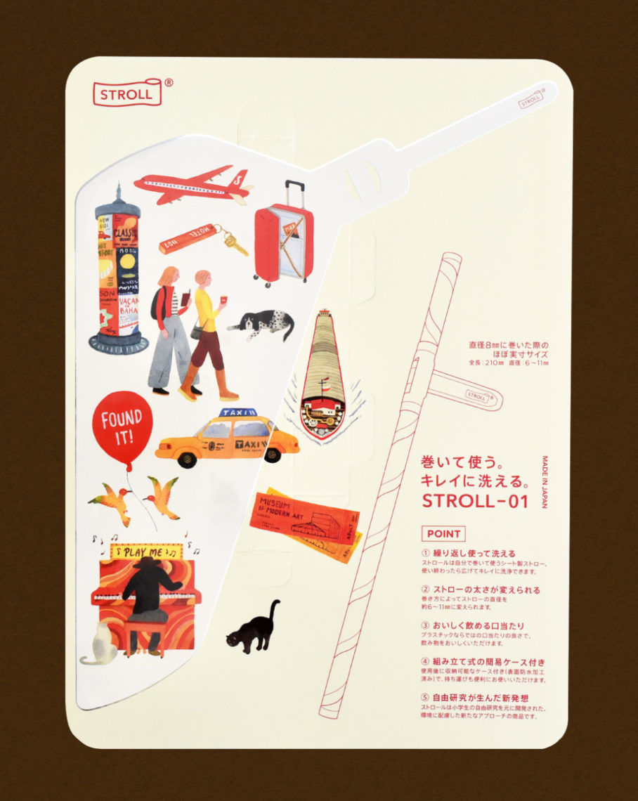 光浦醸造の「シート製ストロー・STROLL」のアートディレクションを担当しました。自分でくるくると巻いて何度でも使えるストローは、光浦醸造の娘さんの自由研究をきっかけに開発された商品です。また光浦醸造のもつ優しく朗らかなトーンに合わせ、3名のイラストレーターさんにご協力いただき、素敵なイラストを描いていただきました。商品は光浦醸造さんのオンラインショップからも購入できます。